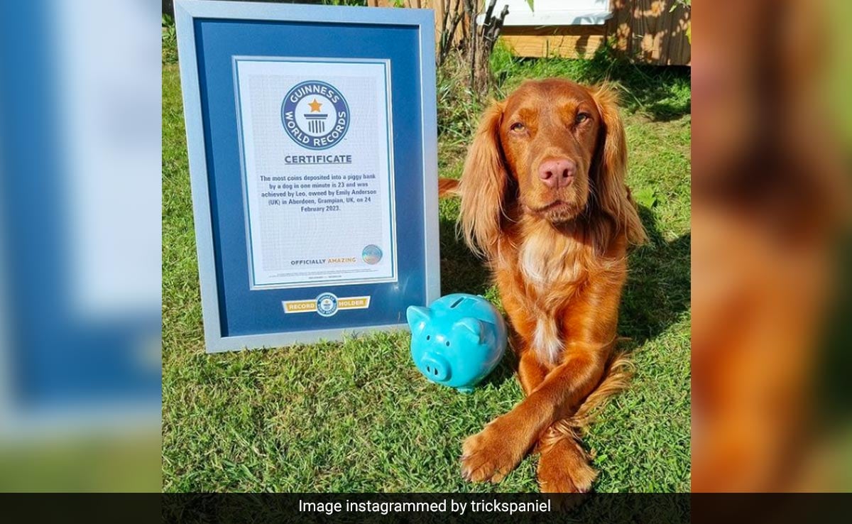 Leo, a two-year-old working cocker spaniel who loves learning and doing tricks, is now a world record holder. Leo is a talented dog from Scotland with unusual skills, and he earned the World Record by using his mouth to deposit 23 coins into a piggy bank in 1 minute.